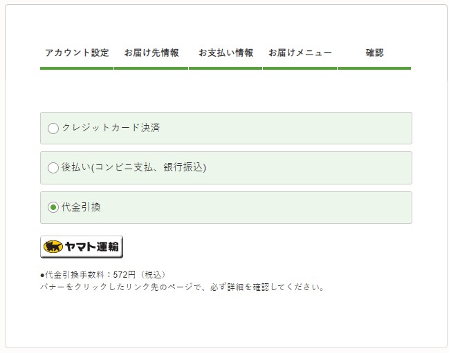 ただ代金引換での注文は別途手数料が572円(税込)かかります。